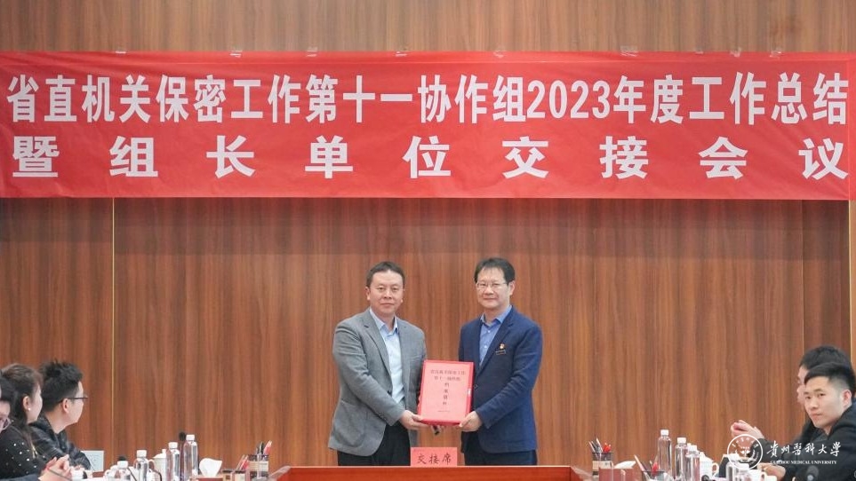会议通报2024年组长单位推选情况并举行组长单位档案移交仪式,贵州中医药大学成为2024年省直机关保密工作第十一协作组组长单位。