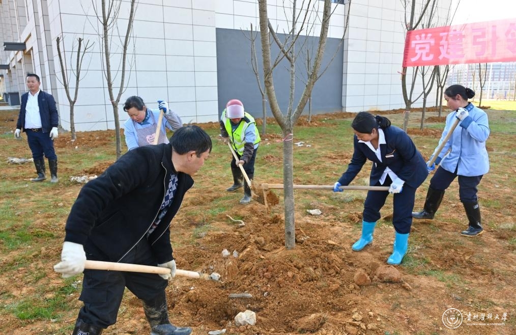 党委办公室党支部、校长办公室党支部、宣传与统战党支部、机关党支部、发规档案与校友基金会党支部、后勤管理处第一及第二党支部党员参加本次活动。所有树木由后勤管理处组织的贵州贵安新区丰泰裕餐饮管理有限公司(一号食堂)、贵州泰华后勤服务管理有限公司(二号食堂)、江西芒果青年实业有限公司(三号食堂)、太阳成集团tyc33455cc官网餐饮服务有限公司(四号食堂)、中航物业管理有限公司(五号食堂)、新大正物业集团股份有限公司、贵州绿地物业管理有限责任公司无偿捐赠。