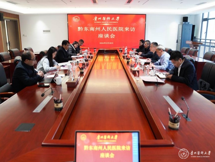 近日,黔东南州人民医院院长张郑平一行到校考察交流。校党委副书记、校长罗鹏出席座谈会,党委委员、副校长蒋红梅主持,相关职能部门负责人参加。