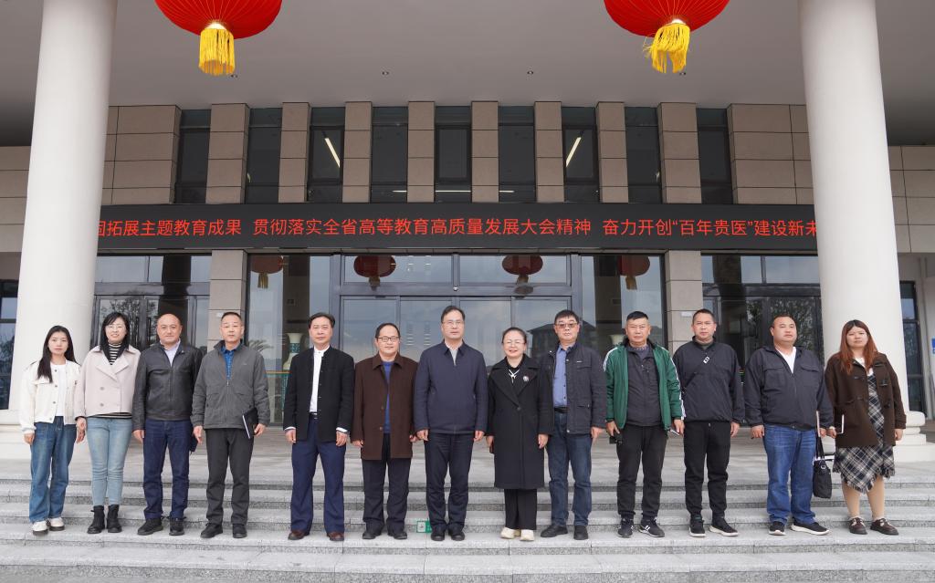沈祥春代表学校对罗红英一行的到来表示欢迎,并简要介绍学校的发展历程,在省委省政府关于高校优化布局调整的重大决策部署下,学校全力以赴狠抓落实,实现了贵医发展历史上的又一次跨越式发展。他表示,希望通过加强两校间的交流学习,共同助力建设教育强国、科技强国、人才强国,为地方经济社会发展和现代化建设作出新的更大贡献。