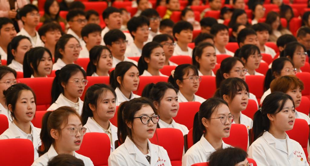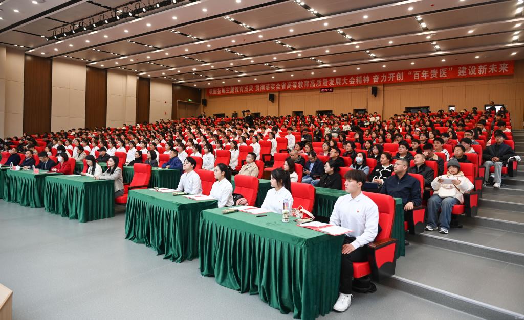 刘文表示,同学们应心怀国之大者,肩负时代之责;牢记医学使命,守护人民健康;筑牢学业根基,练就过硬本领。希望同学们志存高远、脚踏实地,勇担时代使命,把个人的理想追求融入祖国医药卫生健康事业之中,在强国建设、民族复兴的伟大征程中挺膺担当、奋勇争先!