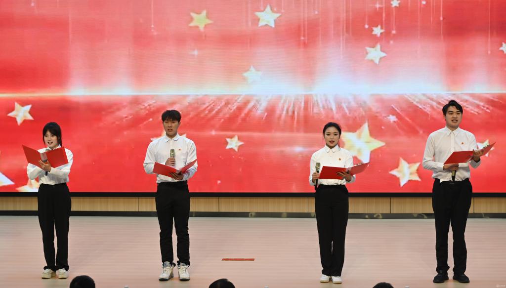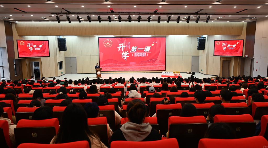 开学第一课上,来自各学院的学生代表们现场朗诵了“请党放心 强国有我”的铮铮誓言:“今天,我们沐浴在新时代的阳光下,洋溢着青春的气息;今天,我们奋进在新征程的春风里,歌颂人民英雄的荣光;今天,我们在国旗下,向祖国致以青春的礼赞!奋斗正青春!青春献给党!”