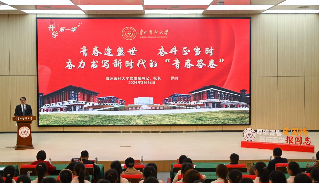 “科技创新是人类社会发展的重要引擎,是应对全球性挑战的有力武器。科技创新是一场没有终点的马拉松,比拼的是速度,更是耐力,需要久久为功。”罗鹏勉励贵医学子,“只有敢蹚别人没走过的路,才能收获别样风景,敢拓前人没垦过的荒,才能开辟新的空间。紧握时代脉搏,把稳人生航向,始终秉持‘诚於己、忠于群、敬往思来’的校训精神,能勇挑重担,展现过硬本领,以大医治国的胆魄,悬壶济世的仁心,努力成为可堪大用、能担重任的栋梁之材。努力为实现中华民族伟大复兴的中国梦贡献青春力量。”