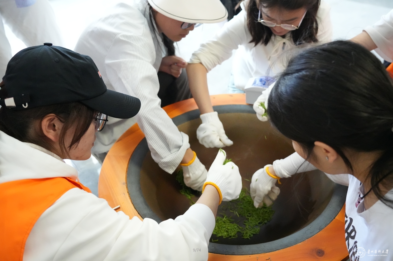 蒋红梅与同学们畅谈劳动的价值与快乐,与同学们合唱《劳动最光荣》,一句“幸福的生活从哪里来,要靠劳动来创造”将现场气氛推向高潮。她引用《岁时百问》中的“万物生长此时,皆清洁而明净”,引导同学们用心感受清明这一节气的独特性,鼓励同学们走进大自然,到自然中去学习书本以外的知识,感受中国传统文化的魅力,在劳动中展现新时代青年的精神风貌。采制茶过程中,同学们认真学习,沉浸式体验采摘、炒青、揉捻等过程,制成绿茶、红茶等不同种类的茶品,并在欢声笑语中品鉴自己的劳动成果,从色、香、味、形对炒制茶进行全方面认识。