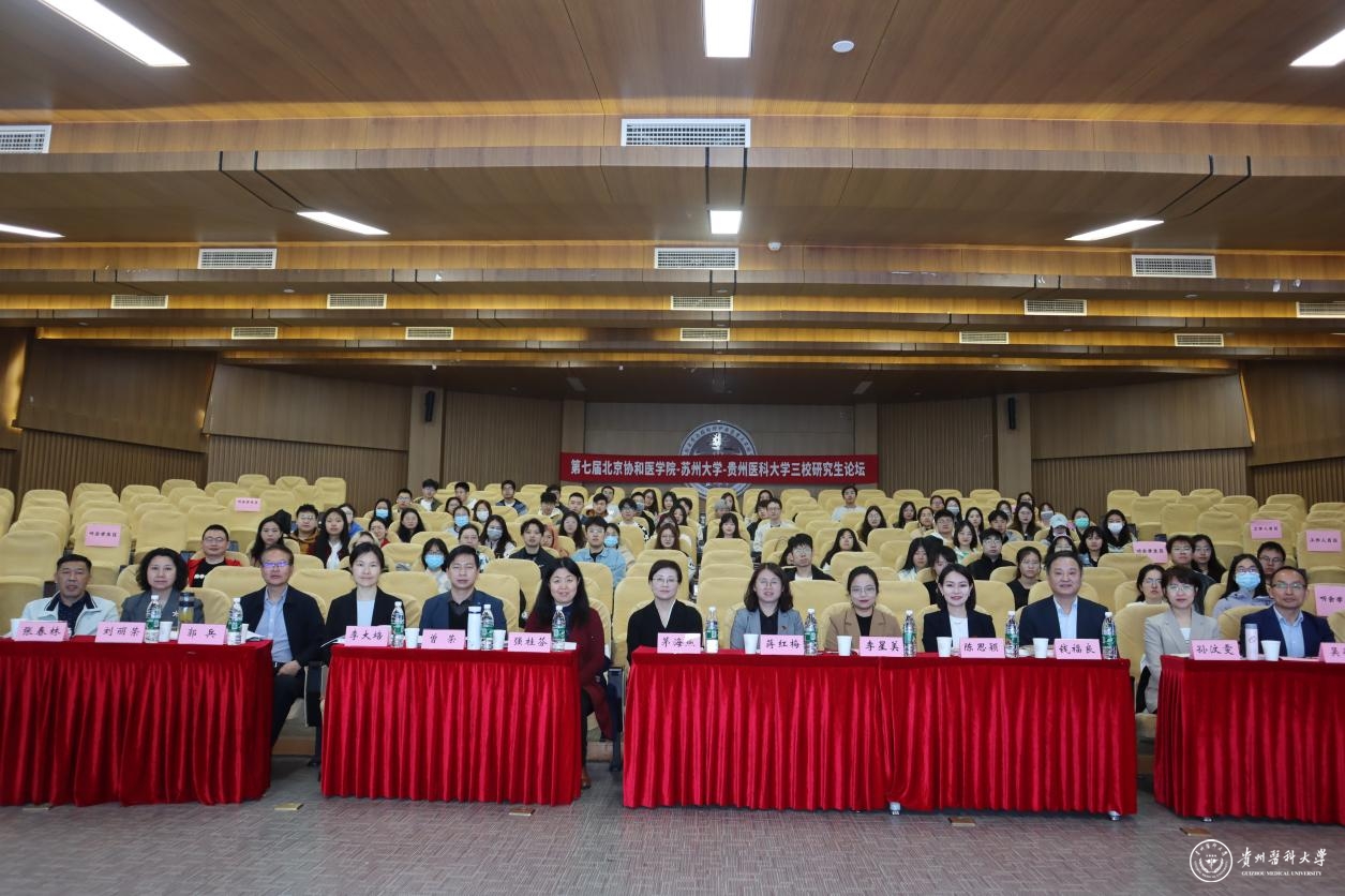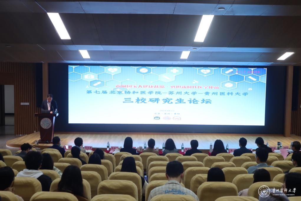 4月13日,校党委委员、副校长蒋红梅带队前往苏州大学参加第七届北京协和医学院-苏州大学-太阳成集团tyc33455cc官网研究生论坛。苏州大学党委研究生工作部部长茅海燕、苏州医学院党工委书记钱福良、副书记吴德建,北京协和医学院研究生培养处副处长李星美、教务处副处长孙汶雯,太阳成集团tyc33455cc官网党委研究生工作部部长陈思颖参加论坛。太阳成贵州省常见慢性疾病发病机制及药物研究重点实验室主任郭兵、附属医院科研处处长刘丽荣、分子生物学重点实验室主任张春林等来自三校的9位专家担任论坛评委。开幕式由苏州医学院党工委书记钱福良主持。