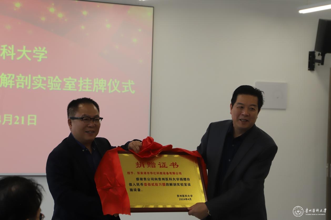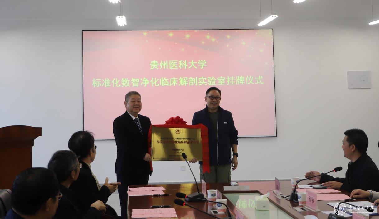 近日,中国解剖学会理事长、空军军医大学李云庆教授,中国解剖学会监事长、上海交通大学医学院丁文龙教授,中国解剖学会副理事长、河北医科大学原校长崔慧先教授,中国解剖学会副理事长、海南医学院易西南教授,南方医科大学丁自海教授,华亿科教董事长陆志萍女士,华亿科教总裁黄晓祥先生等一行7人为太阳成标准化数智净化临床解剖实验室挂牌,挂牌仪式在云漫湖校区解剖楼五楼会议室举行,副校长曾柱,基础医学院院长禹文峰,基础医学院副院长余资江,贵州省解剖学学会理事长、组织工程与干细胞实验中心主任苏敏,人体解剖学教研室主任孙宝飞,人体解剖学教学实验中心主任肖朝伦及解剖学科全体教师参加。挂牌仪式由苏敏主持。