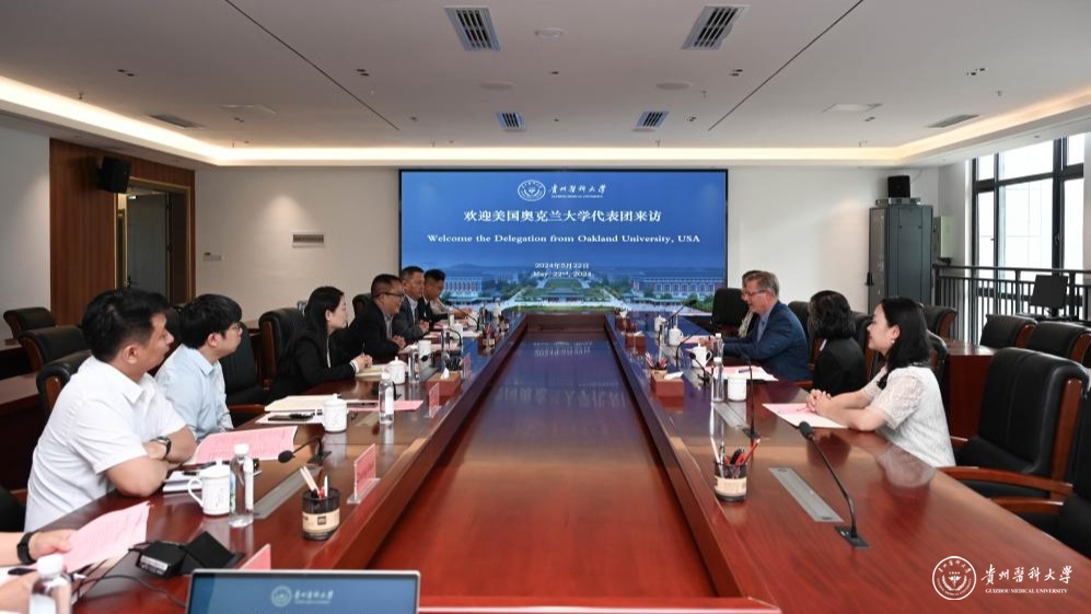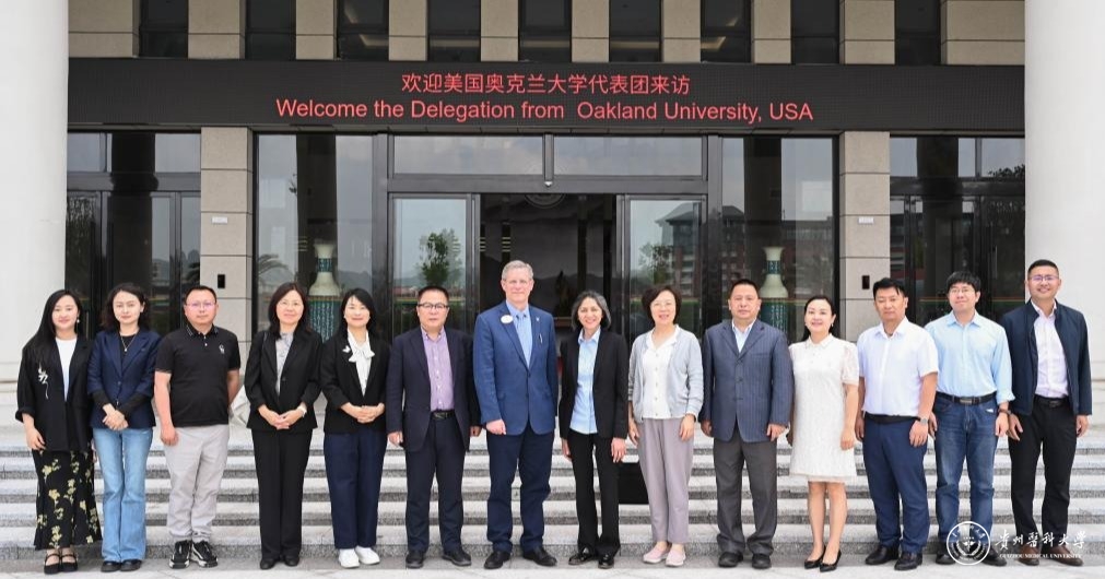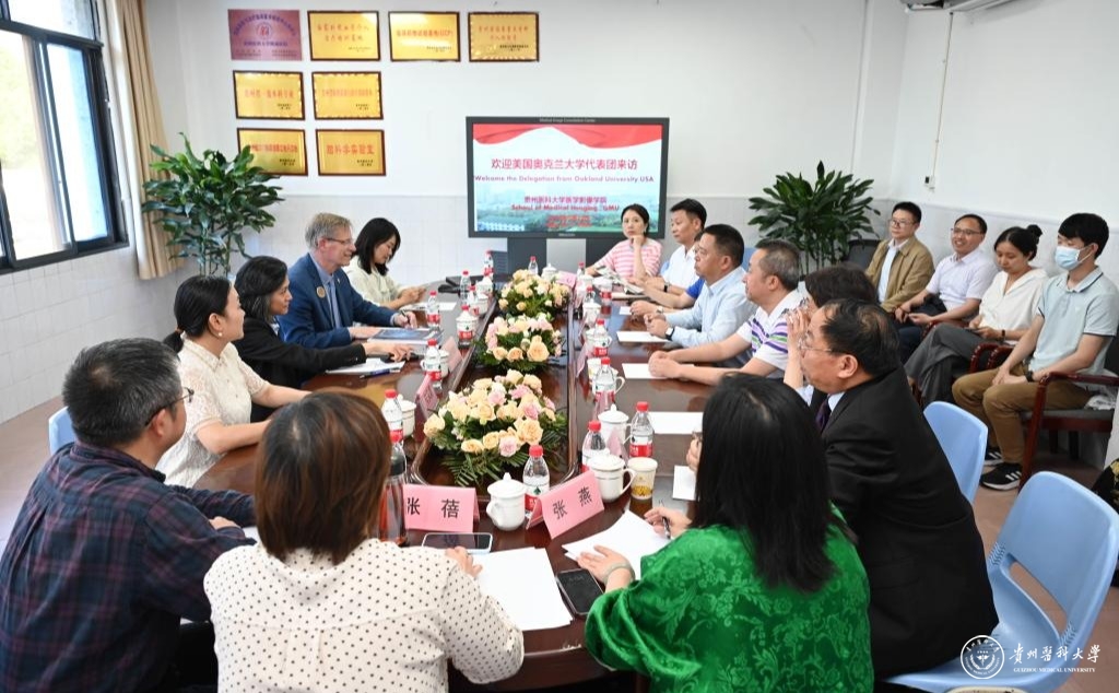 5月22日,美国奥克兰大学代表团一行来访太阳成。交流座谈会在云漫湖知雨楼5楼举行,副校长曾柱出席,校长办公室、教务处、科学技术处相关职能部门负责人,医学检验学院、医学影像学院学科负责人参加,外国语学院书记、院长付启宏主持。