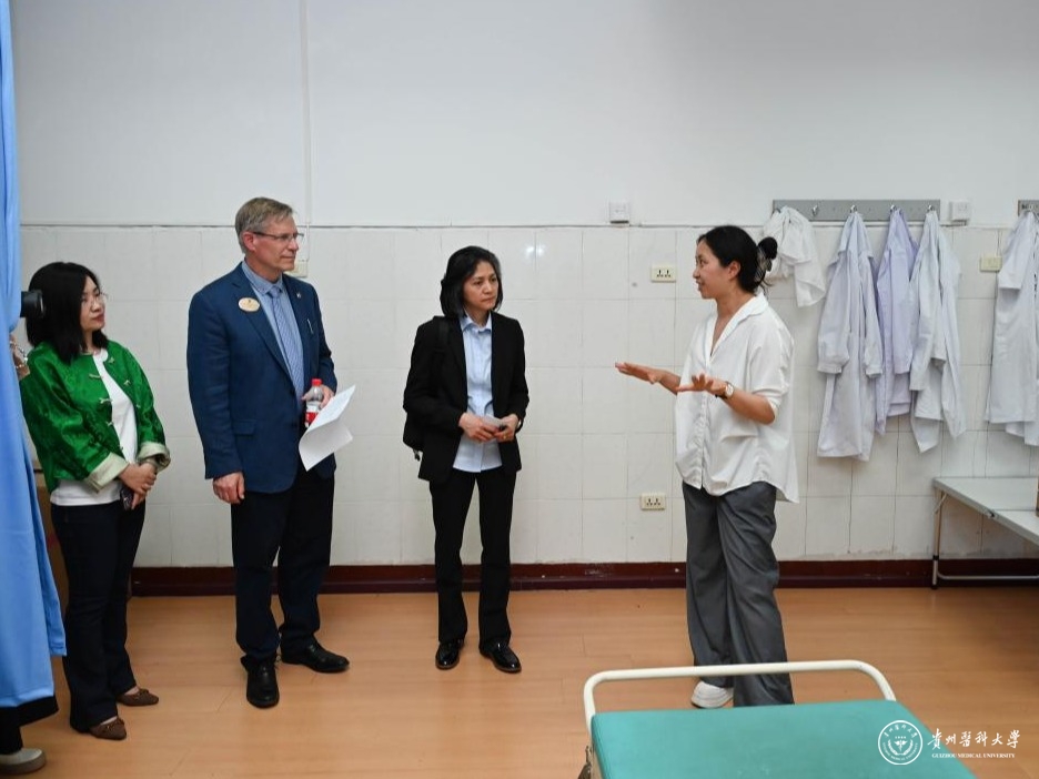 在医学影像学院,听取学院负责人及各科室在学科发展、取得的成果等方面的汇报,参观医学影像诊断中心、影像教学实验室等。