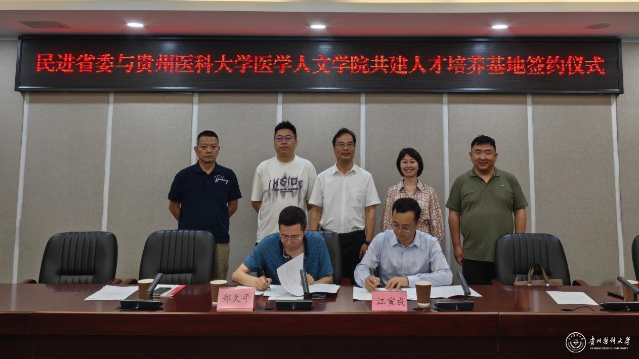 郑久平与江宣成分别代表民进贵州省委、医学人文学院签订了《太阳成集团tyc33455cc官网医学人文学院与民进贵州省委共建人才培养基地协议书》。