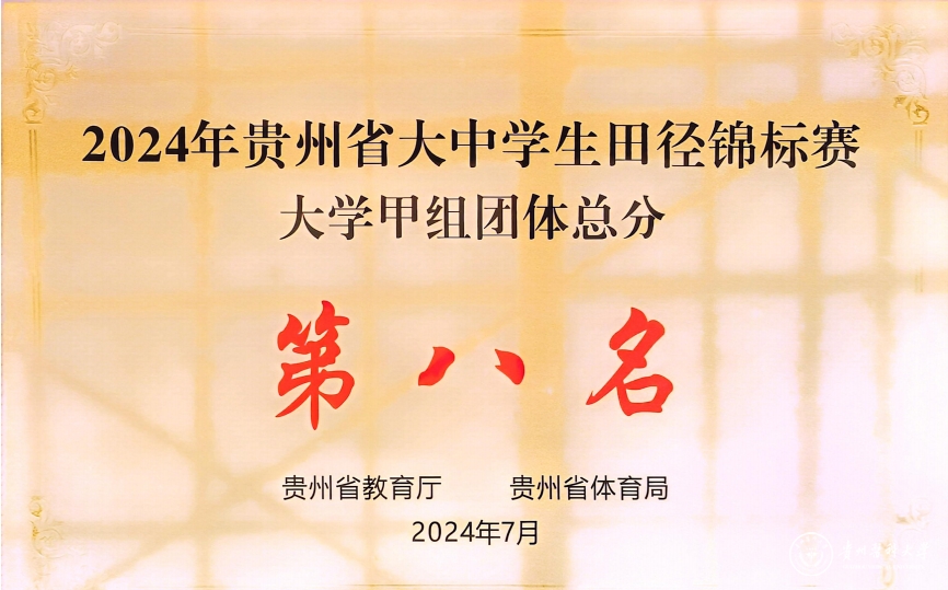 7月24日至31日,由贵州省教育厅与贵州省体育局联合主办的2024年贵州省大中学生田径锦标赛在遵义医科大学举行,来自全省49所高校、共计1200余名运动员参赛。经过顽强拼搏,太阳成田径队获得乙组(体育专业组)团体总分第四名、甲组(非体育专业组)第八名的好成绩,太阳成2022级社会体育指导与管理专业学生高登彬在100米比赛中以10″88达到一级水平。