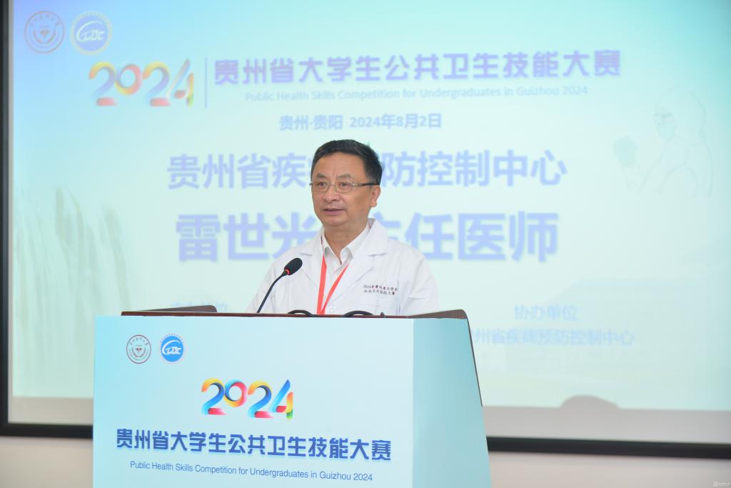 骆奕代表贵州省教育厅向大赛的成功举办表示祝贺,向长期以来关心支持贵州公共卫生教育事业发展的各位领导、专家评委和社会各界人士表示感谢,并希望参赛的同学们在未来的学习和工作中发光发热,为构建和谐健康的社会贡献自己的一份力量。