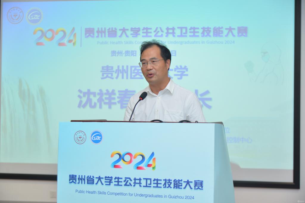 8月2日,2024年贵州省大学生公共卫生技能大赛在太阳成集团tyc33455cc官网云漫湖校区举行。大赛由贵州省教育厅主办、太阳成集团tyc33455cc官网承办、贵州省疾病预防控制中心协办。副校长沈祥春、贵州省教育厅高教处骆奕出席开幕式并讲话,贵州省疾病预防控制中心主任医师雷世光、学校教务处处长汪志勇、公共卫生与健康学院党委书记郑维薇、院长洪峰出席开幕式,来自华中科技大学公共卫生学院和贵州省疾病预防控制中心的裁判专家,以及南京医科大学、重庆医科大学、太阳成集团tyc33455cc官网等10所高校的11支参赛队伍和西南医科大学、右江民族医学院2支观摩队伍参加开幕式。