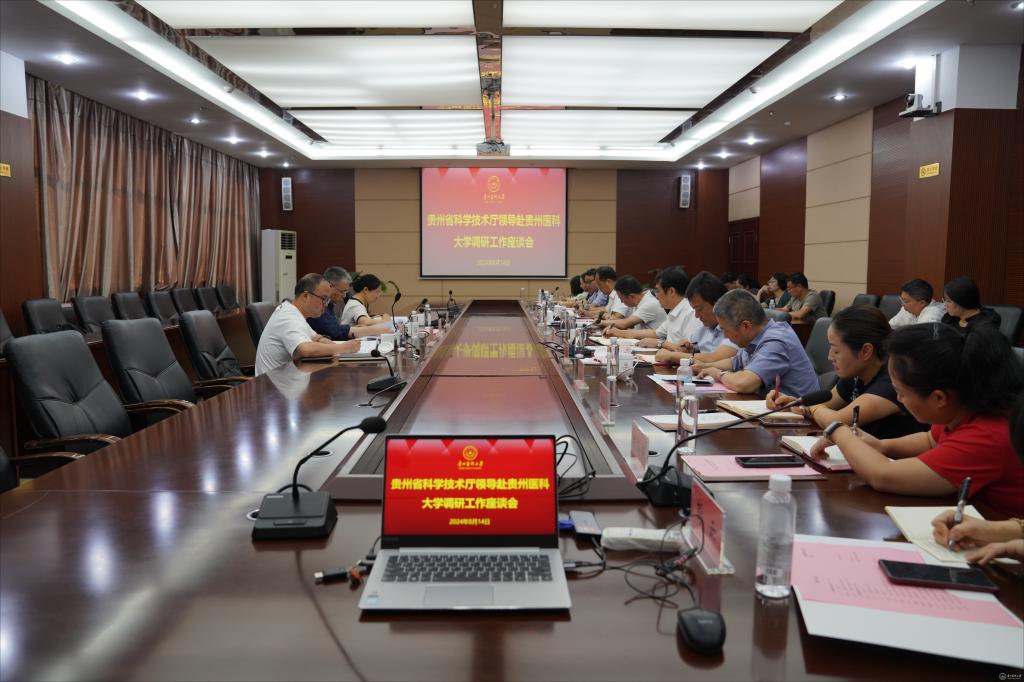 8月14日,贵州省科技厅副厅长杨松,创新平台管理处处长徐国敏一行来校就省部共建药用植物功效与利用国家重点实验室重组的进展情况进行实地调研。校党委副书记、校长罗鹏,校党委副书记汤磊,天然产物研究中心副主任孙超、孙黔云出席,座谈会由副校长沈祥春主持,天然产物研究中心、科学技术处、对外合作交流处等相关职能部门及国家重点实验室部分成员参加。