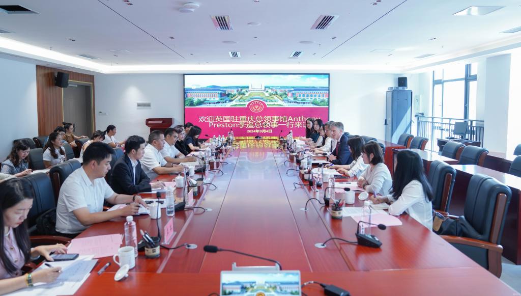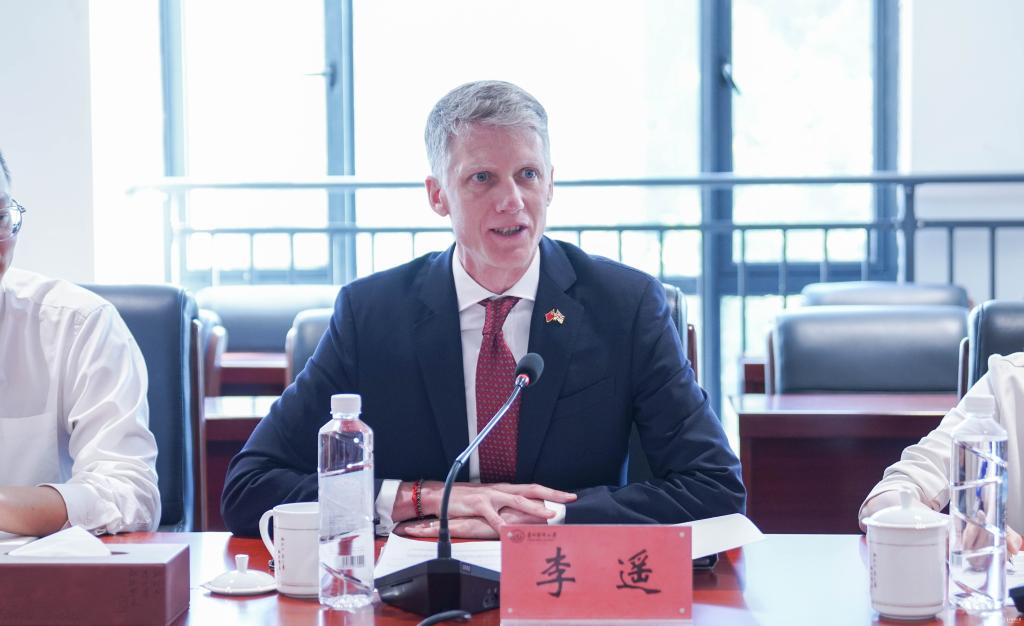 9月4日,英国驻重庆总领事李遥(Anthony Preston)一行访问太阳成,并在知雨楼5楼会议室交流座谈。学校党委副书记、校长罗鹏出席,贵州省卫健委副主任陶晔璇、交流合作处处长李艳萍,贵州省外办及贵州省教育厅相关部门同志参加。会议由副校长齐晓岚主持。