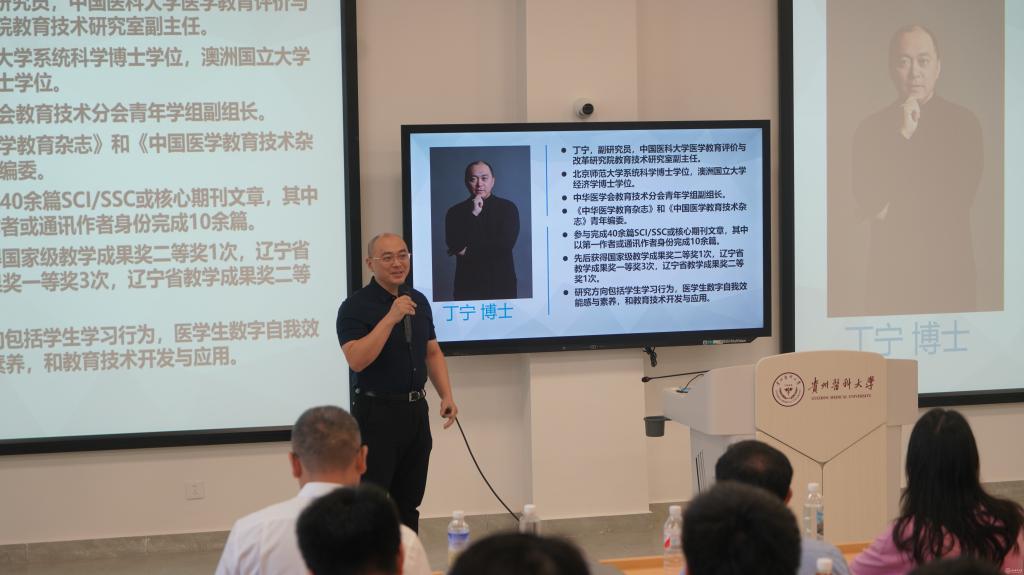 特别邀请中国医科大学丁宁博士、中国医科大学附属医院齐殿君副教授,以《教改项目设计、实施、管理与教改论文撰写发表》为题做专题分享。培训由教务处处长汪志勇主持,全校120余名教师参加学习。丁宁结合自身教育教学背景与实践,以《医学教育改革课题选题与设计》为题,分享教改项目申请的思路、要点和注意事项。齐殿君结合自身教研论文撰写经历与案例,以《医学教学论文的撰写与投稿》为题,分享教学文章的分类、选题、构思研究等问题。讲座结束后,与会教师与两位嘉宾就期刊选择、撰写要点等问题进行了交流。本次培训有效深化了教师对教研论文和教改项目的认识,助力推动学校教学内涵建设和质量提升。