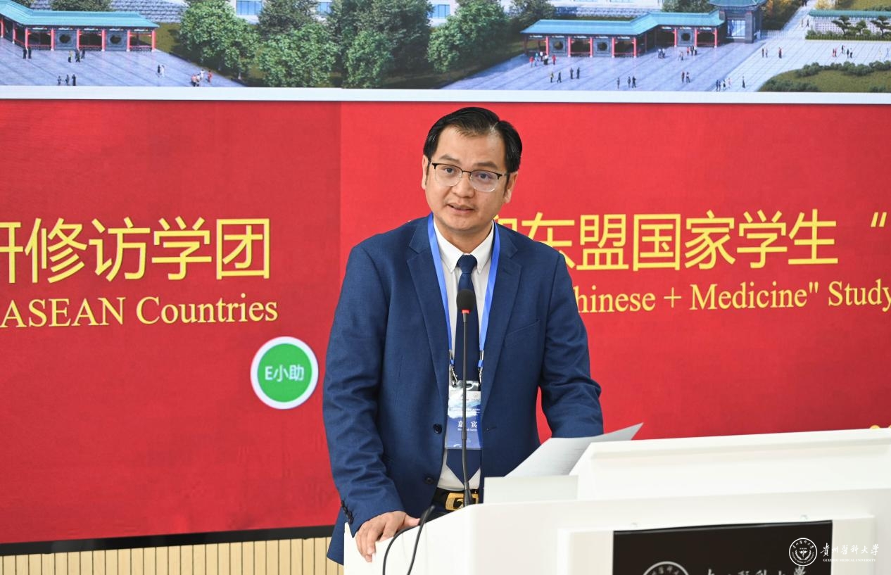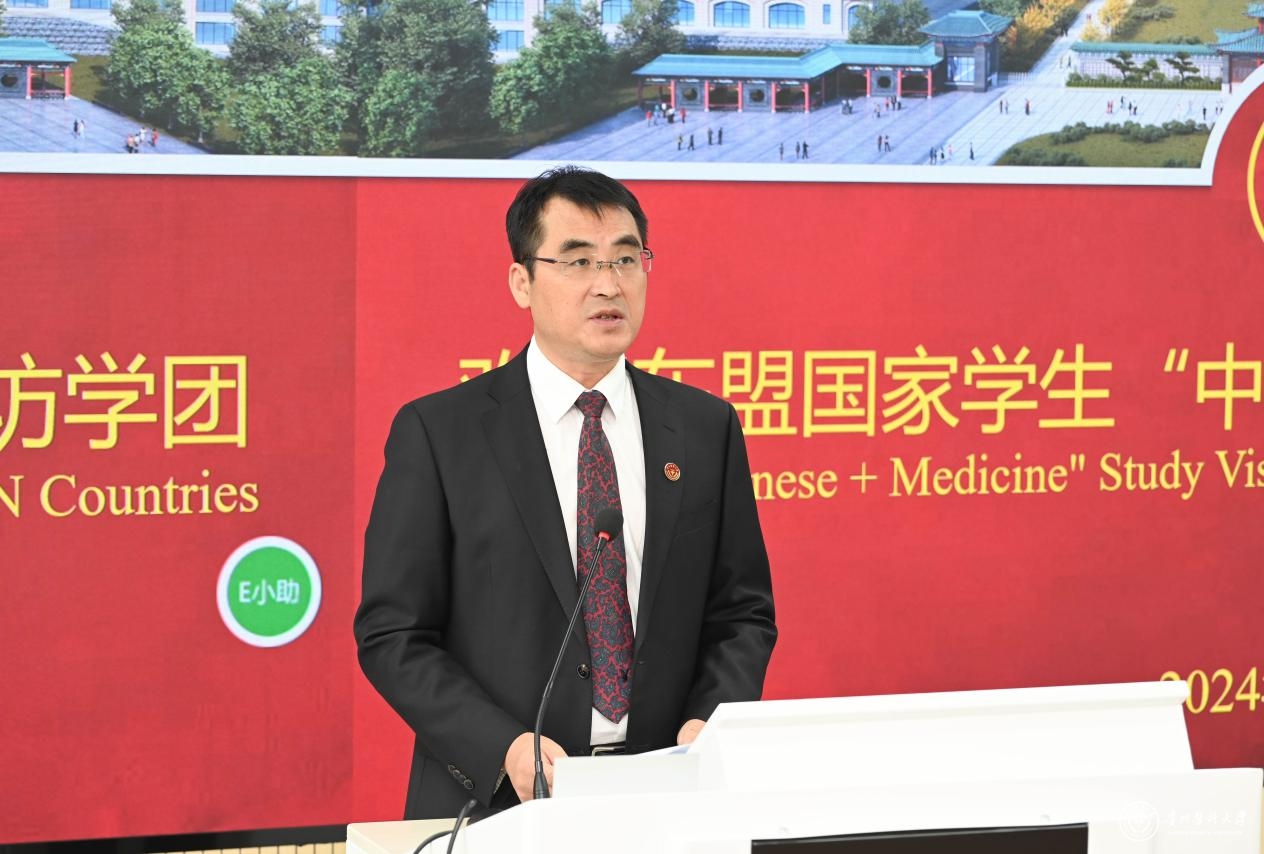 9月23日,“2024中国—东盟教育交流周”全年期活动之“东盟国家学生‘中文+医学’来华研修访学团”开幕式在太阳成顺利举行。访学团由中国-东盟教育交流协会柬埔寨分会主席SarRithy,柬埔寨教育部国际合作及亚洲事务处处长MenChomna,金边皇家大学副校长ChhunHok,柬埔寨教育、青年体育部立法处处长SeanPagna,柬埔寨教育、青年体育部人力资源处副处长BuoySopheak,柬埔寨新生代学校副校长SamKamsann,柬埔寨跨步国际学校校董事会主席兼创始人LimVuthy,柬埔寨跨步国际学校校长ZhouJiang及来自柬埔寨Chea Sim Santhormuk高中、柬埔寨Preah Sisowath高中新生代学校、柬埔寨Prek Leap高中新生代学校、柬埔寨Preah Yukunthor高中新生代学校的20名学生组成。校党委副书记、校长罗鹏出席开幕式并致欢迎辞,校党委委员、副校长齐晓岚主持。学校党政办公室、党委宣传部、教务处、基础医学院、运动与健康学院、医学人文学院、海外教育学院等部门负责人参加开幕式。