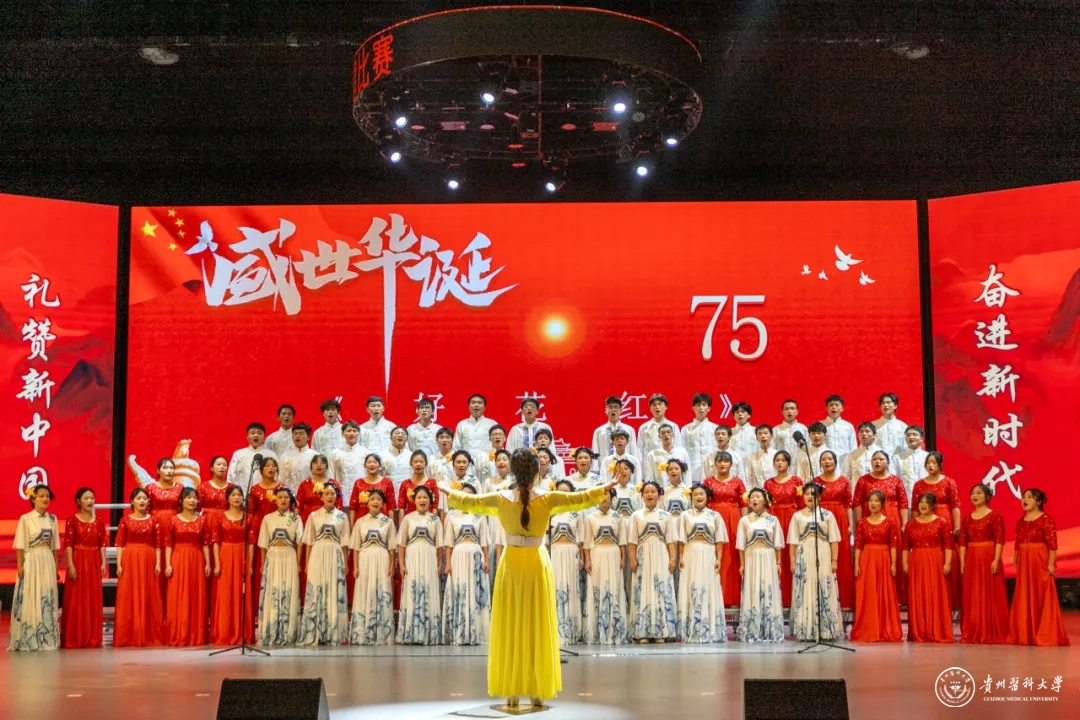 齐晓岚在致词中表示,此次活动用歌声礼赞伟大的党、伟大的祖国、伟大的新时代,热情讴歌祖国75年的奋斗历程和辉煌成就,展示太阳成向真向善向美向上的校园文化,必将进一步激发广大贵医青年为实现中国式现代化而努力奋斗的决心和信心。希望同学们坚定理想信念、胸怀赤诚之心,坚持勤勉不倦、练就过硬本领,坚信团队协作、增强合作意识,用实际行动和优异成绩向伟大的祖国致以最深敬意。