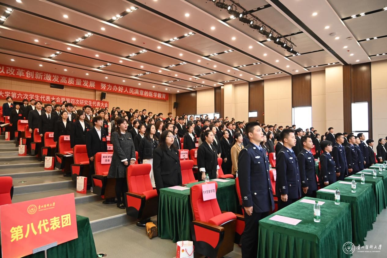 汤磊对大会的召开表示热烈祝贺。他肯定了过去一年,校学生会和校研究生会在学校党委的领导下,在省学联和校团委的具体指导下,在思想政治引领、社会实践活动、服务同学成长成才等方面做的工作。对与会代表及全体贵医青年提出三点希望,一是要筑牢理想信念。加强政治理论学习,在学习中找准历史方位、明确奋斗方向。二是要发奋成长成才。勤于思考、善于总结,不断提升品德修为,努力争创一流业绩,成为所在专业、所在领域的行家里手。三是要勇于创新实践。要发扬不怕苦、不畏难、不惧牺牲的优秀品质,将所学知识转化为解决实际问题的能力。并对各级学生会、研究生会组织提出要求,一是要提升满意度,以增强广大同学的社会化能力为主要目标,打造一批做得实、叫得响的服务项目。二是要提升贡献度,充分发挥党委联系青年学生的桥梁纽带作用。三是要持续推进改革,坚持精干职能、力量下沉、协同发力,不断强化校院两级组织的协同联动能力,以扎实的工作成效赢得广大同学和全校各单位的广泛认可。