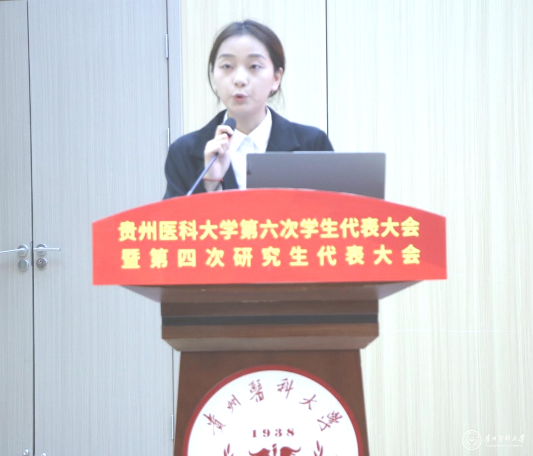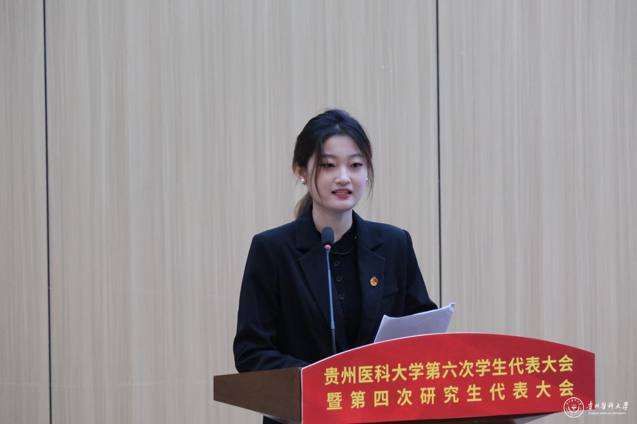王妤煜宣读《贵州省学联关于同意召开太阳成集团tyc33455cc官网第五次学生代表大会暨第三次研究生代表大会的批复》。