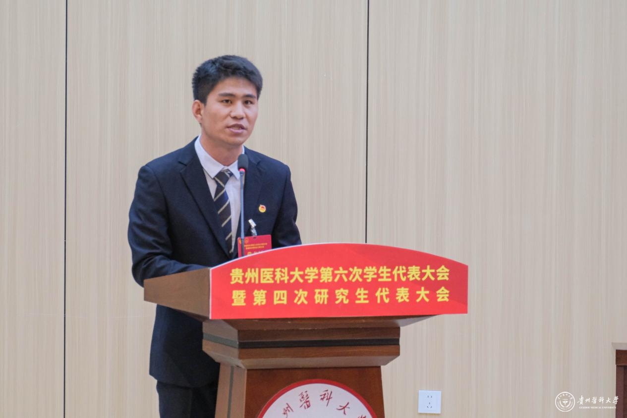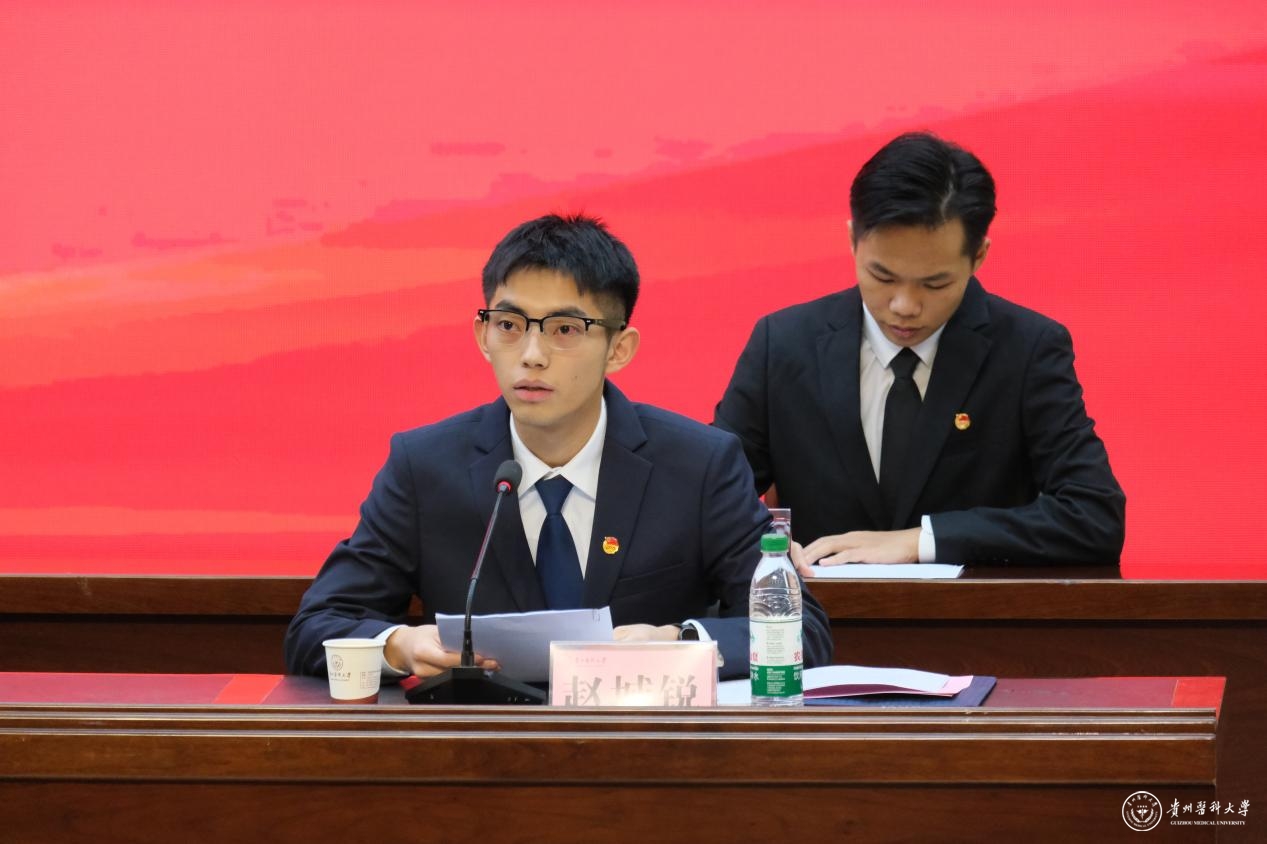 省学生联合会驻会主席赵城锐代表共青团贵州省委、贵州省学生联合会向大会发言。