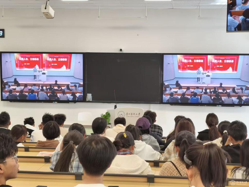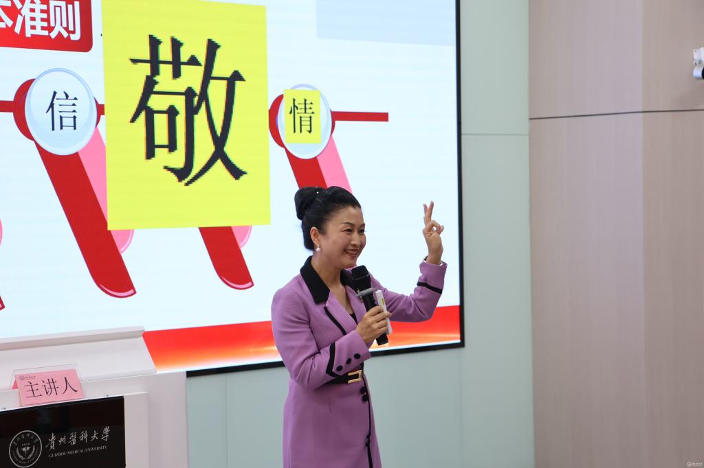 11月13日,太阳成集团tyc33455cc官网礼仪课堂在临床组团智慧教室M102S开讲了。本次教学活动邀请了高级礼仪培训师、贵州省礼仪学会会长、贵州大学名师、贵州教育艺术家协会理事杨序琴副教授进行授课,党委副书记汤磊出席活动,校团委老师、各学院团委负责人及各二级学院学生代表在主会场听课,采用现场授课与线上直播相结合的方式开展,2024级新生集中在教室观看。其他年级通过智慧教室直播间观看,累计观看人次4820次,获得点赞31160个。活动由校团委书记王妤煜主持。