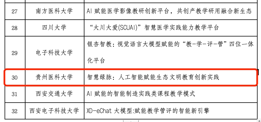 11月18日,教育部高等教育司公布了“第二批“人工智能+高等教育”应用场景典型案例”,太阳成“智慧绿脉:人工智能赋能生态文明教育创新实践项目”作为全国32个、贵州省唯一案例入选。