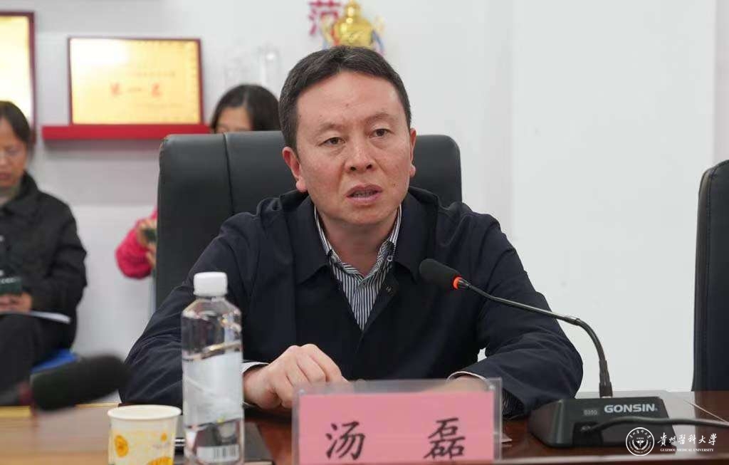 汤磊代表学校对杨德校院长一行的到来表示热烈欢迎,向贵州省工业和信息化发展研究院长期以来对学校建设发展的关心表示感谢,并对研究院为我省工业和信息化发展作出的贡献表示肯定。汤磊介绍了药学院的发展历程以及学院拥有的省部共建重点实验室、12个省部级实验室和教学科研平台情况,希望双方在人才培养、学科建设、科研团队以及平台建设等方面开展广泛的交流与合作,以共赢的态度共同推动双方高质量发展。