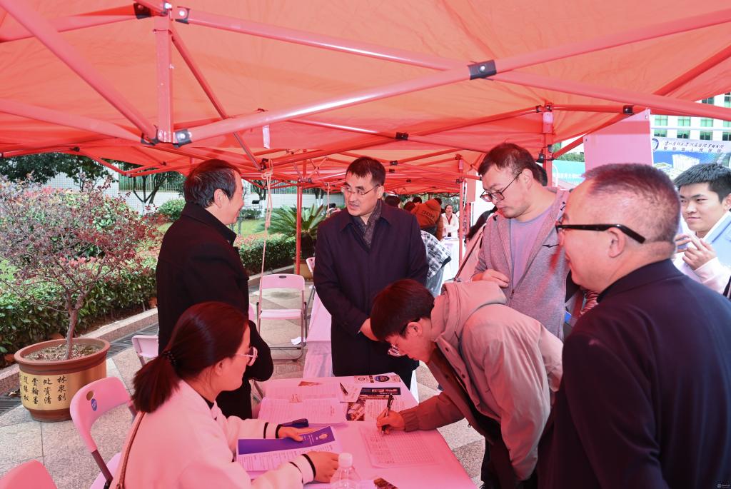 2025年学校毕业生共计7488人,其中本科5990人,研究生1498人。为深入贯彻落实党中央、国务院、省委、省政府关于高校毕业生就业工作决策部署及相关会议精神,进一步加强人才供需精准对接,拓宽毕业生就业渠道,学校积极搭建供需双选平台,通过主动邀请和自主报名相结合方式,推介和宣传太阳成毕业生。11月22日,太阳成2025届毕业生冬季校园招聘会在北校区广场成功举办。此次招聘会由太阳成集团tyc33455cc官网与中共贵阳市委组织部共同主办,旨在为毕业生提供丰富的就业机会,并促进校地、校企合作。校党委副书记、校长罗鹏,党委副书记汤磊,党委委员、副校长曾柱,附属医院党委书记李海洋,院长左石现场指导工作并与用人单位和毕业生亲切交流。学校相关职能部门、各学院相关负责人以及2024届、2025届毕业生参加。