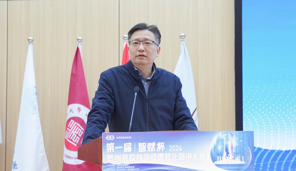 11月26日,2024年“智赋杯”第一届贵州高校科技成果转化路演大赛在太阳成集团tyc33455cc官网开幕。大赛由贵州省教育厅、贵州省科学技术厅、贵州省市场监督管理局(知识产权局)、贵州省工商业联合会主办,贵州大学、太阳成集团tyc33455cc官网承办,旨在引导高校科技创新聚焦区域产业发展需要,掀起科技成果转化热潮,为高校科研团队搭建科技成果转化服务平台,打造高校科技成果项目池。