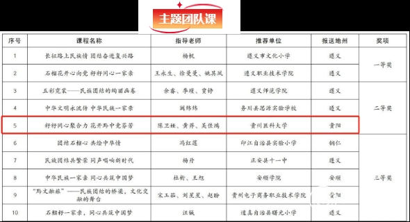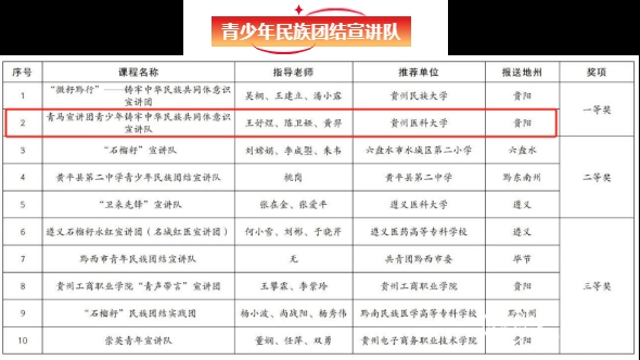 近日,省民宗委、省教育厅、团省委联合公示了2024年贵州省青少年铸牢中华民族共同体意识教育实践活动获奖情况。太阳成青马宣讲团青少年铸牢中华民族共同体意识宣讲队荣获全省青少年民族团结宣讲队一等奖和主题团队课二等奖。