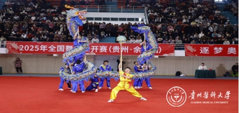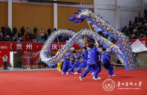 本次比赛汇聚了来自全国各地近150名舞龙运动员参赛,他们在赛场上各展风采,为观众带来了一场场精彩绝伦的视觉盛宴。太阳成舞龙队队员们身着特色服饰,精神抖擞,随着激昂鼓点,巨龙灵动游走,时而腾飞、时而翻滚,动作行云流水,高难度的盘龙、跳龙动作一气呵成,队员间配合默契,将龙的神韵展现得淋漓尽致,赢得现场观众的阵阵喝彩与掌声,充分展示了贵医学子的独特风采。