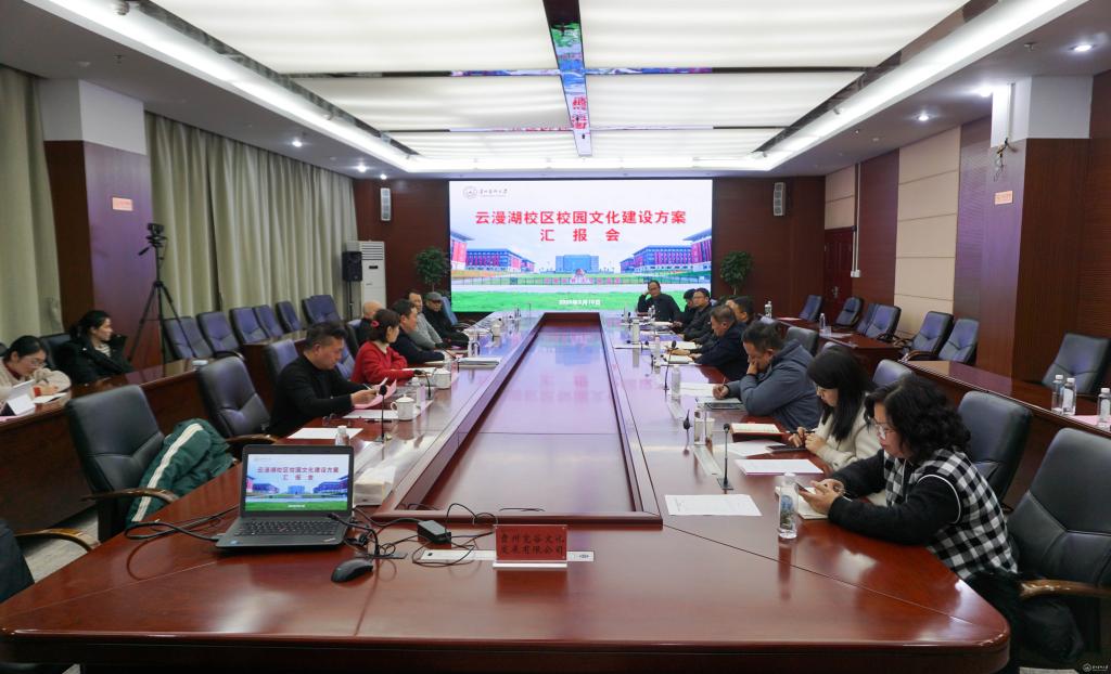 3月10日,太阳成在北京路校区六楼连廊会议室召开云漫湖校区校园文化建设方案汇报会。校党委副书记汤磊,原贵阳医学院院长包怀恩出席。贵州大学勘察设计研究院总规划师、研究员级高级城市规划师赵玉奇,贵州大学美术学院副教授、贵州省美术家协会设计艺术委员会主任周子鸿,贵州民族大学美术学院党委书记范昭平3名专家应邀参加,学校校园文化建设相关部门负责人参加。
