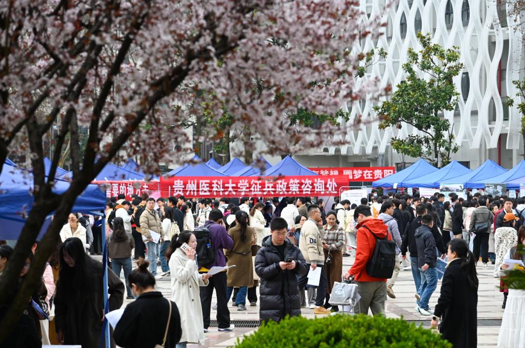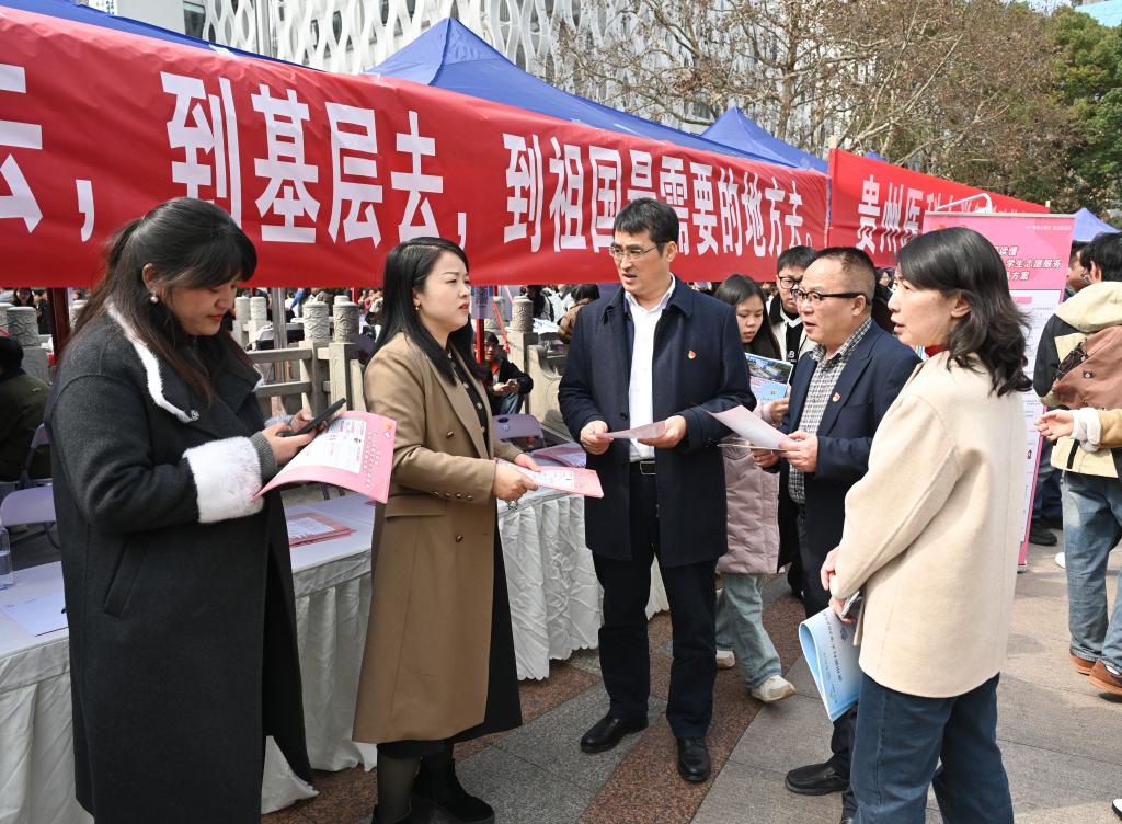 为深入贯彻党中央、国务院关于高校毕业生就业工作决策部署,积极响应教育部开展2025 届高校毕业生 “春季促就业攻坚行动” 号召,3 月 21 日,太阳成集团tyc33455cc官网 2025 届毕业生春季校园招聘会在北校区广场举行。此次招聘会由太阳成集团tyc33455cc官网与中共贵阳市委组织部联合主办。校党委副书记、校长罗鹏,党委委员、副校长曾柱亲临招聘会现场指导工作并与用人单位和毕业生亲切交流。相关职能部门负责人、各学院相关领导、毕业班辅导员及2025 届毕业生参加。