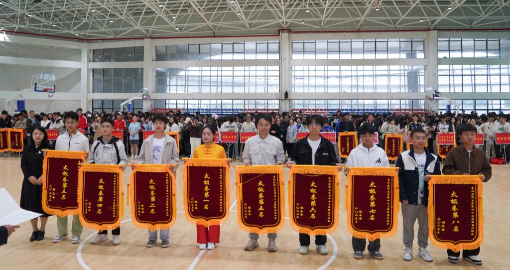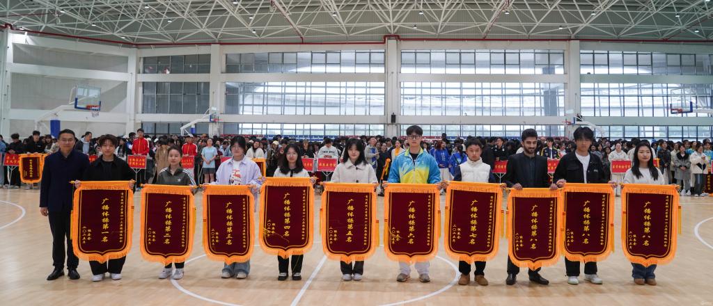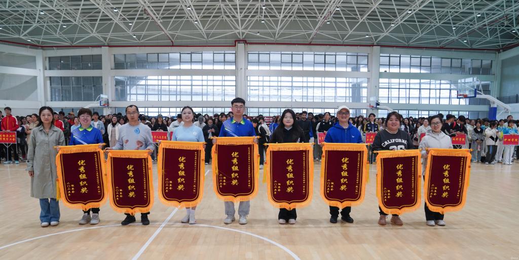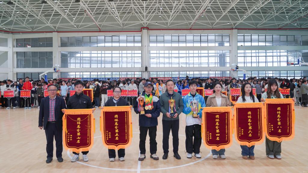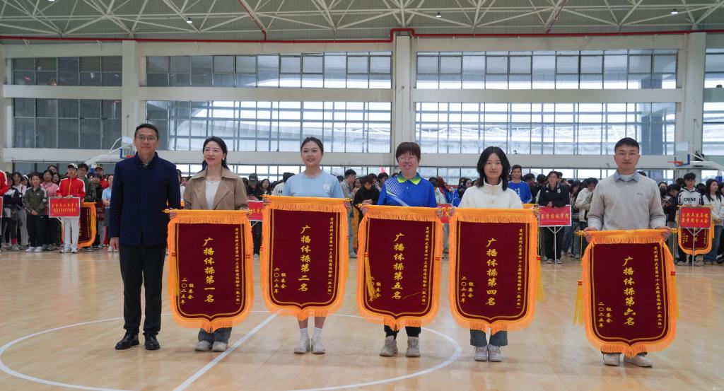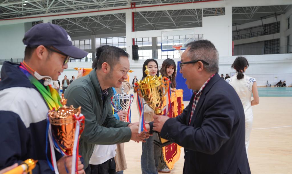 曾柱和党政办公室、党委宣传部、学工部、校团委、运动与健康学院等部门负责人为运动员颁奖。