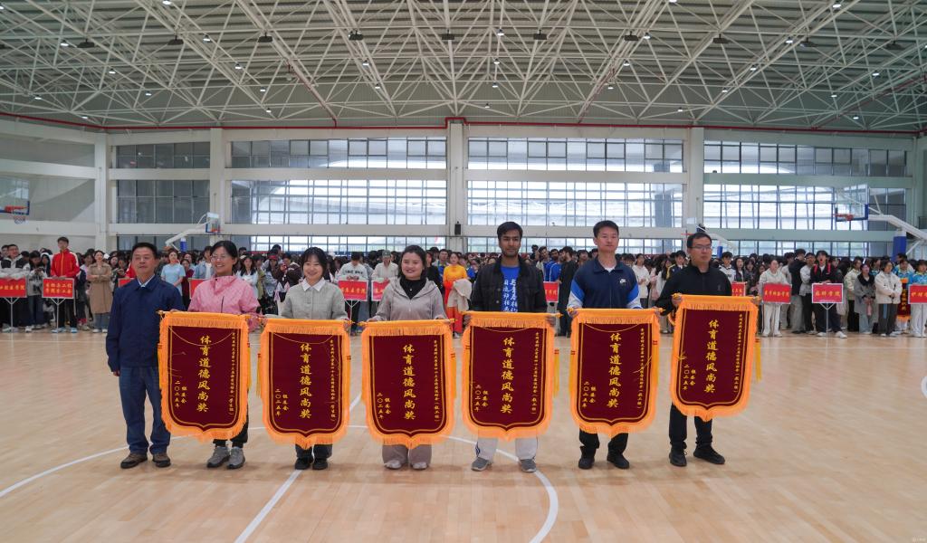 4月12日上午,太阳成集团tyc33455cc官网第43届校运会在云漫湖校区体育馆篮球场圆满闭幕。校党委委员、副校长曾柱为运动员颁奖并致辞,学校党政办公室、党委宣传部、学工部、校团委等部门负责人以及1000余名运动员和老师、学生代表参加。闭幕式由运动与健康学院党委书记姚思勤主持。