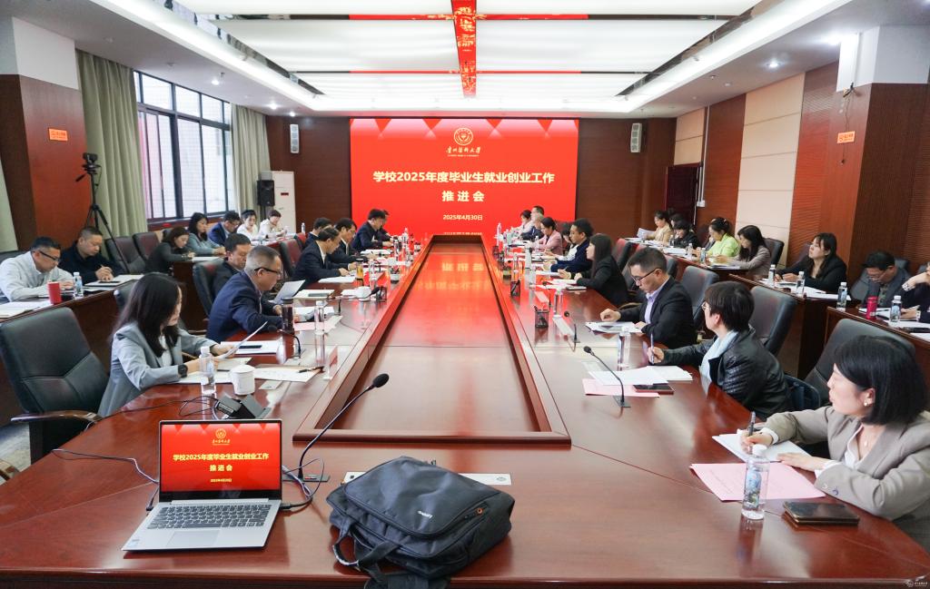 何志旭提就业工作要求,一是压实主体责任。明确各学院书记、院长为就业工作第一责任人,要求亲自部署推动、靠前指挥,细化任务分工,形成全员参与的就业工作体系;二是强化协同机制。整合党政领导、导师、辅导员、科任教师等多方力量,建立纵向贯通、横向协同的工作网络,通过层层落实责任凝聚就业工作合力;三是实施精准督导。建立毕业生就业落实率动态监测机制,分管校领导加强指导督导,督促联系学院积极主动作为,确保毕业去向落实率、就业质量同步提升。