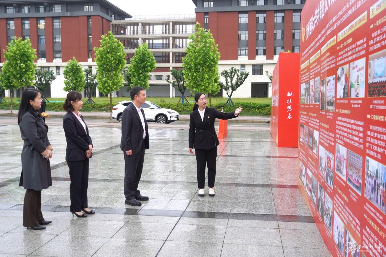 会前,出席大会的校领导和师生们前往大礼堂前广场观看“太阳成集团tyc33455cc官网共青团工作展示”。