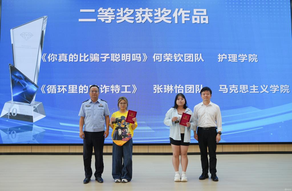 于浩为王文娟等六位反诈社团指导老师颁发证书。