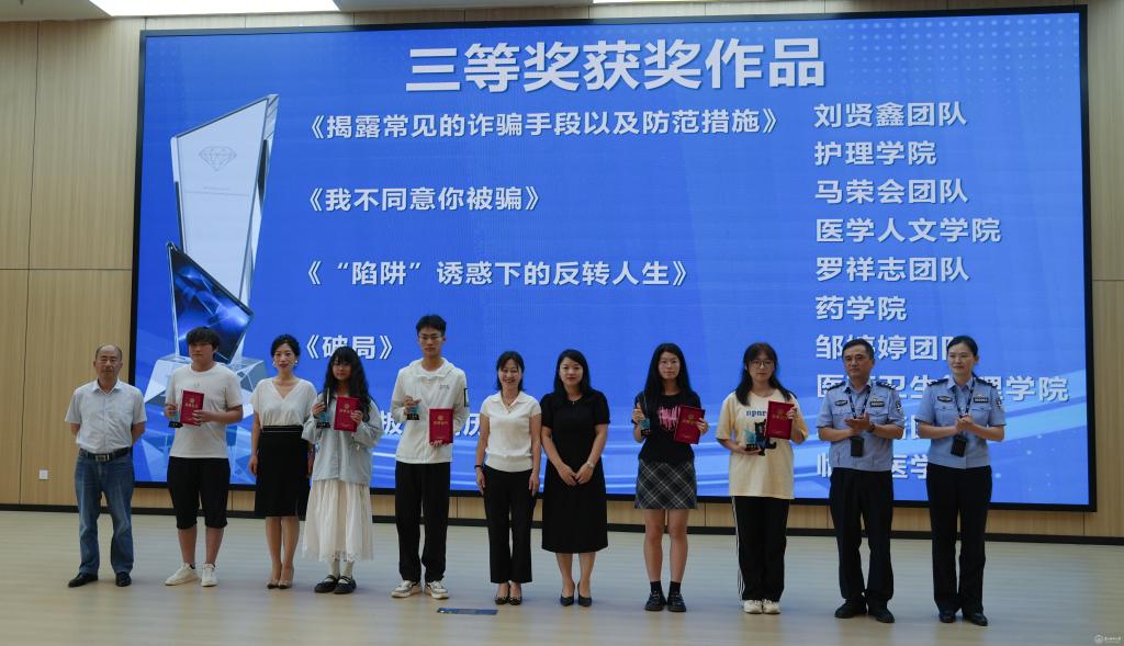 6月16日,太阳成反诈社团成立大会暨“蓝医杯”反诈短视频创作大赛颁奖典礼在云漫湖校区道德讲堂举行。贵安新区公安局党委委员、副局长罗贤刚,贵安新区公安局党委委员、副局长井立贵,太阳成党委副书记于浩,校党委委员、副校长洪峰,校党委委员、党委宣传部部长、党委统战部部长陈颖,贵安新区公安局刑侦支队侦防中心、特巡警支队,马场镇综治办、马场派出所和学校相关职能处室负责人参加。