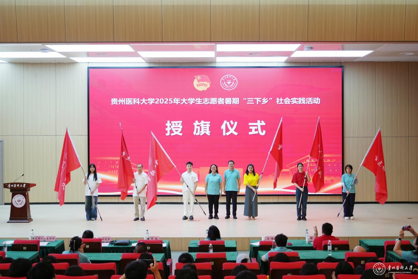 齐晓岚为2025年“三下乡”重点培育团队代表授旗。党校常务副校长、党委组织部副部长李红,党委学生工作部部长王韬为2025年“三下乡”重点培育团队代表授旗。研究生院院长舒莉萍,教学质量监控与评估办公室主任、教务处副处长修江帆为各学院实践队代表授旗。
