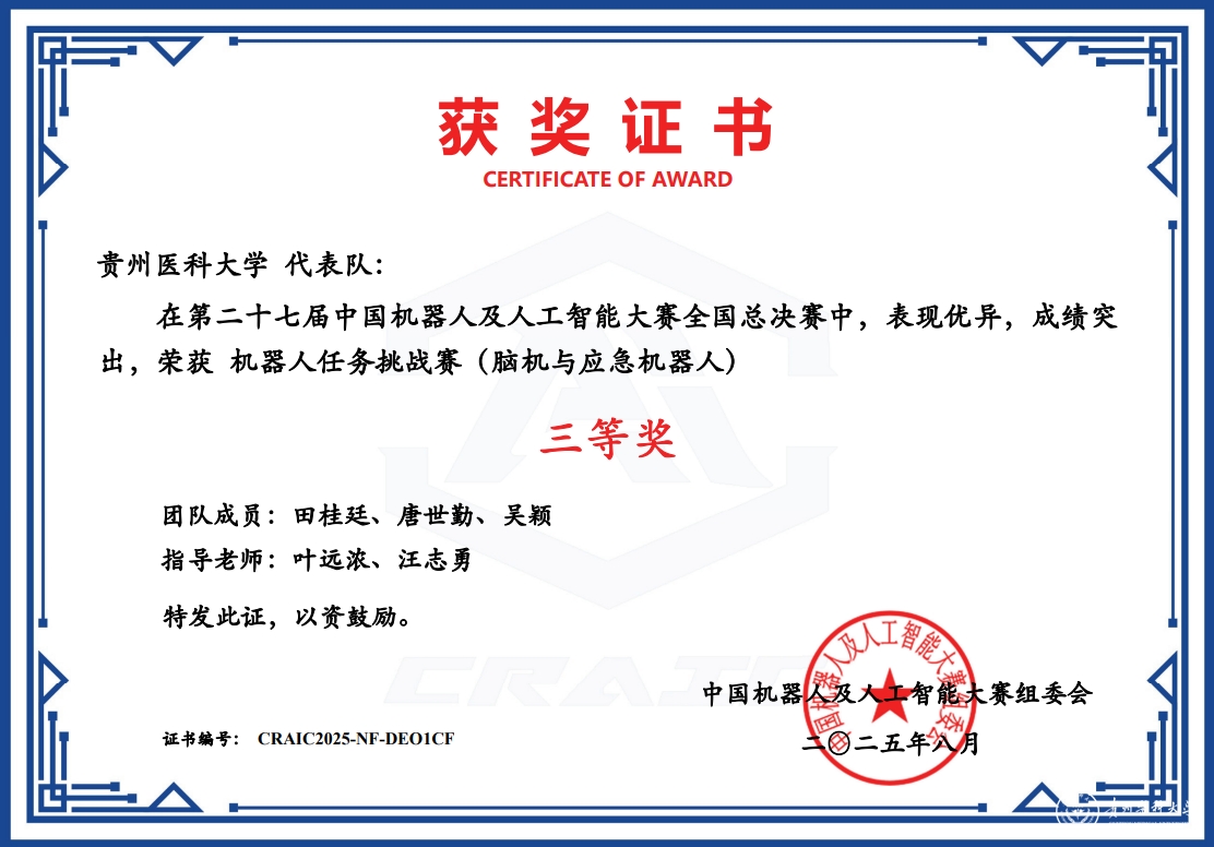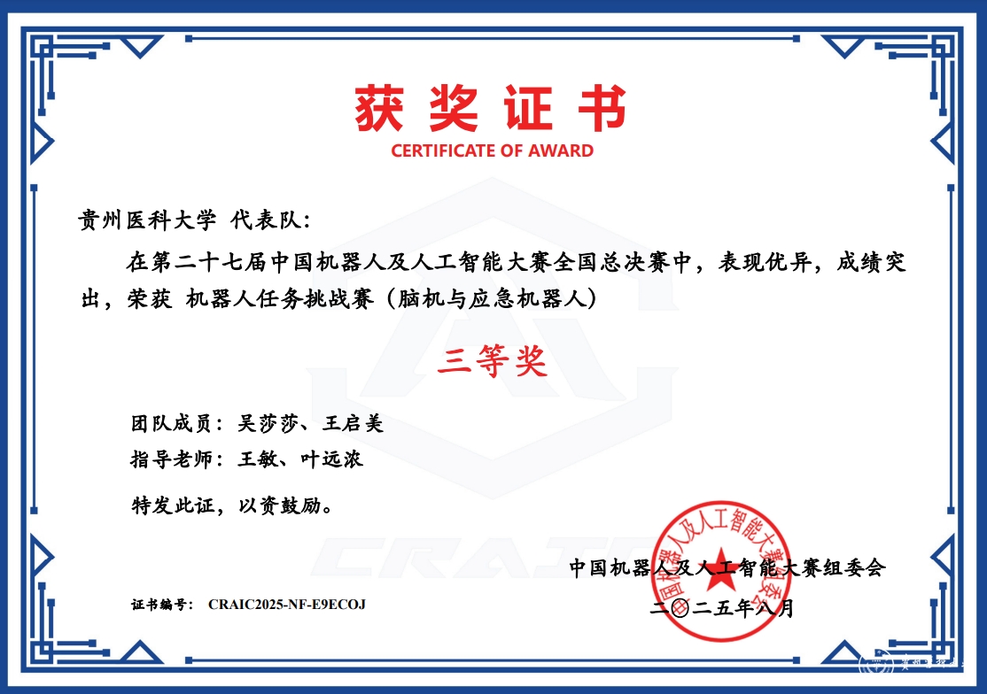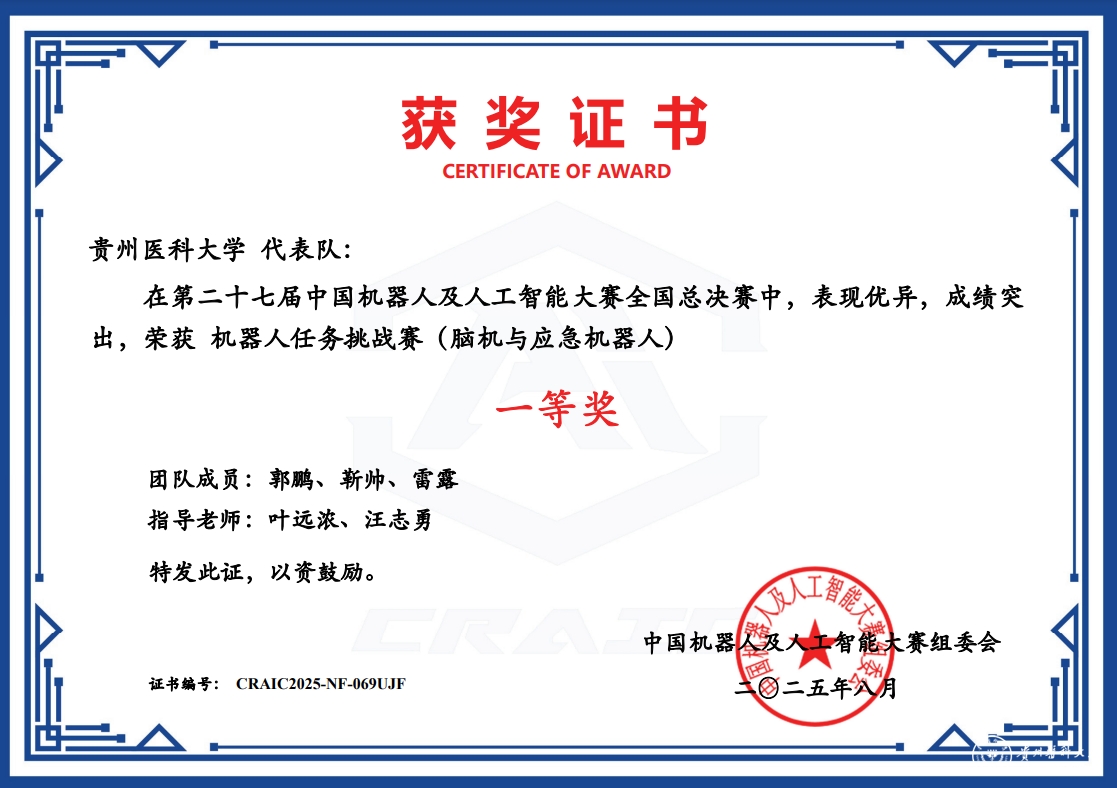 本次比赛取得的佳绩是太阳成“以赛促学、以赛促教”育人模式的又一成果,再次彰显了太阳成在医学人工智能应用型人才培养方面的显著成效,同时激励着更多的学生投身于机器人及人工智能前沿领域的学习和研究中。未来,太阳成将持续为学生搭建更多高水平的实践平台,鼓励学生积极参与,不断提升自身的综合素质和专业能力。