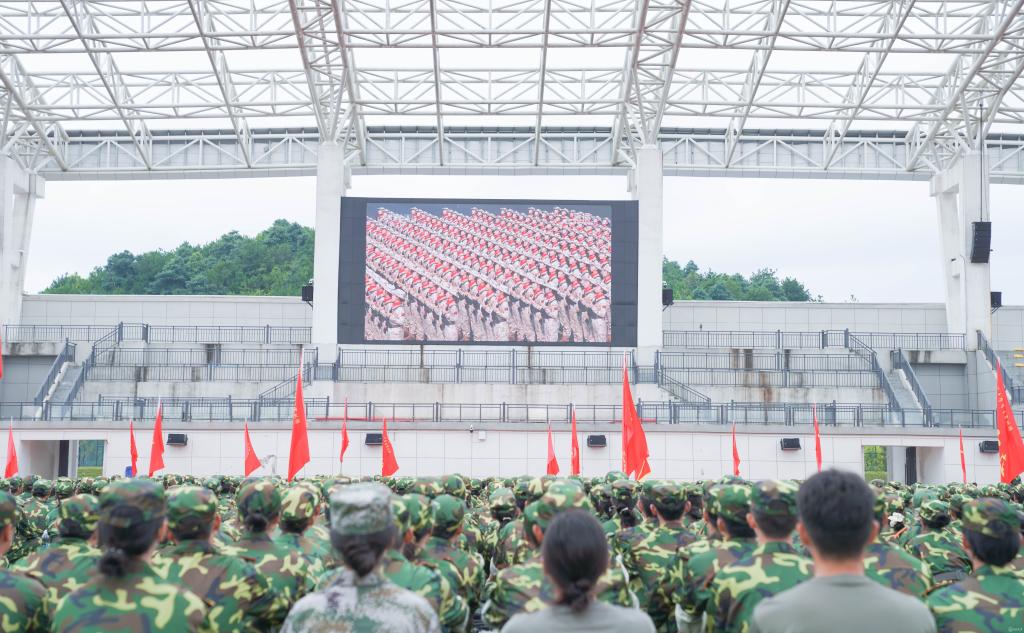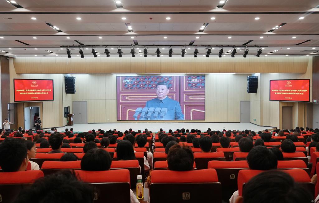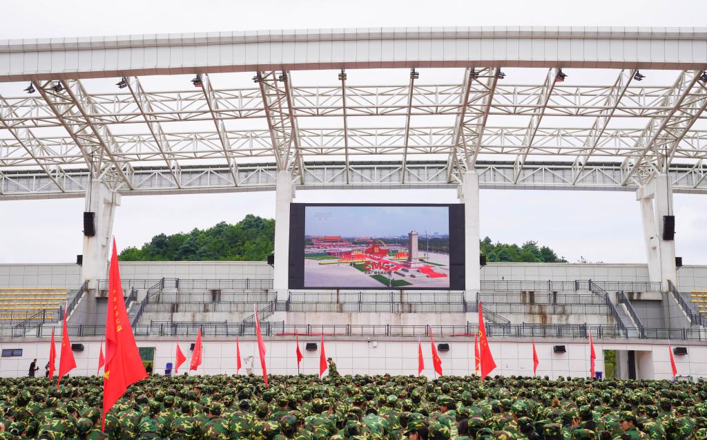 全员覆盖:从“核心队伍”到“青春力量”的同频共振。上午8时45分,主会场已座无虚席。当屏幕中传来“鸣放礼炮”的铿锵声,现场瞬间安静——所有人目光紧盯屏幕,跟随阅兵式的节奏,感受新时代强军兴军的磅礴力量。徒步方队迈着整齐的正步走过长安街时,会场内数次响起自发掌声;装备方队展示的国产尖端武器装备,更让师生们感叹“这就是中国力量”。
