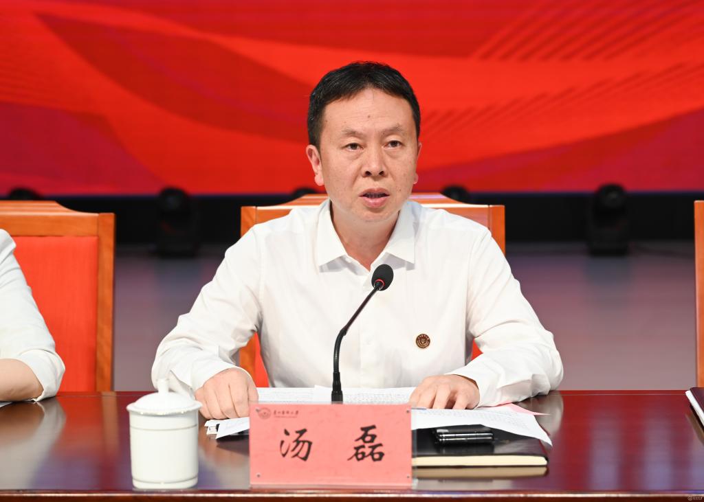 汤磊强调,要深刻把握新时代高等医学教育发展的历史方位,坚定不移把立德树人作为根本任务,以“一站式”学生社区建设为抓手,构建德智体美劳全面培养的教育体系,打造贯穿学生成长全过程的立德树人主阵地。他要求教师队伍深入践行“以生为本”理念,主动了解学生需求,切实解决实际问题,培养担当民族复兴大任的时代新人。在学科建设方面,汤磊指出要立足服务健康中国战略大局,以制度创新驱动学科发展,完善学科带头人机制,强化教学科研协同创新,重点拓展直属附属医院资源,构建医教研深度融合的高质量发展新格局。针对干部队伍建设,汤磊提出要培育具有医科特色的组织文化,营造人文关怀的校园生态,提升战略谋划和精细化管理能力,建立健全廉洁风险防控机制,以新时代好干部标准打造一支政治过硬、业务精湛、作风优良的管理队伍,为学校高质量发展提供坚强保障。
