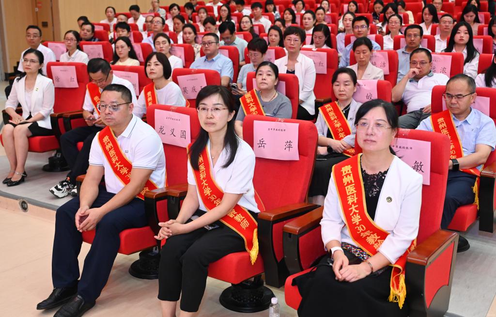 师德先进个人代表徐红、优秀教师代表王建塔、审核评估评建工作先进个人代表王涛先后发言,分享了他们在教书育人、师德修养、评建攻坚等方面的宝贵经验和心路历程,展现了贵医人潜心教育、追求卓越的精神风貌。