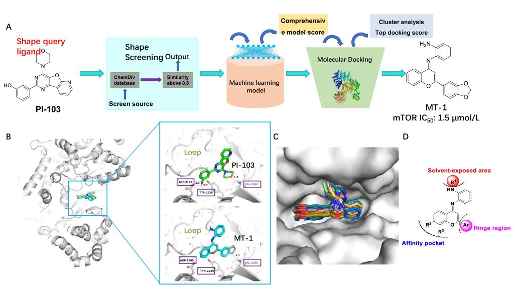 汤磊/张吉泉教授团队采用人工智能辅助药物设计(AIDD)与计算机辅助药物设计(CADD)联合策略,从150万化合物库中筛选出苗头化合物MT-1。随后采用基于结构的药物分子设计策略(SBDD),经多轮结构优化,最终获得高选择性mTOR抑制剂MT-44。该化合物具有纳摩尔水平的mTOR抑制和TNBC细胞增殖抑制活性,能有效阻断PI3K/Akt/mTOR信号通路,并在MDA-MB-231异种移植小鼠模型中展现出强效抗肿瘤效应。机制研究显示,MT-44在诱导肿瘤细胞自噬的同时,激活模式识别受体TLR2,上调cGAS/STING信号通路,并诱导细胞免疫原性死亡(ICD)。