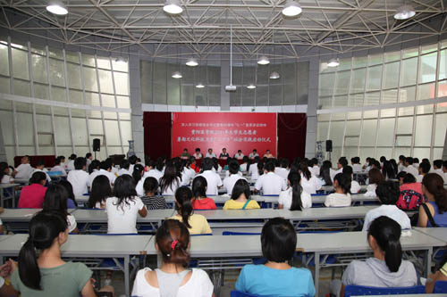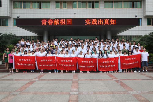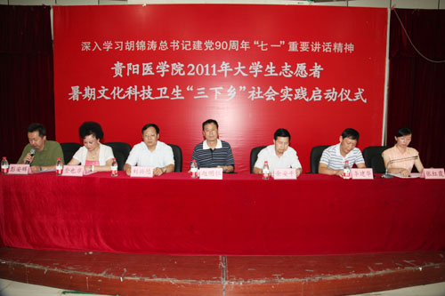 在启动仪式上,校团委书记张红霞对今年的暑期“三下乡”社会实践工作安排情况进行了介绍。今年的社会实践活动紧紧围绕“永远跟党走 青春献祖国”的主题开展,继续采取点、面结合的方式,以点带面组织开展既有深度、又有广度的系列活动。院团委共组织九支分队在贵定、遵义、松桃等地开展以“十二五”规划宣讲、“追寻红色足迹”等为内容为期半个月的科技文化卫生“三下乡”社会活动。