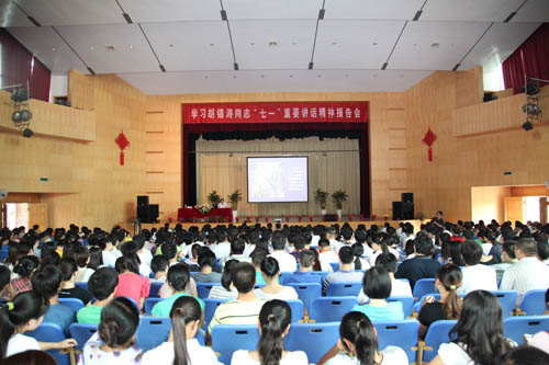 为深入学习贯彻胡锦涛同志“七一”重要讲话精神,把广大党员干部和群众的思想统一到《讲话》精神上来,根据省委宣传部、省委教育工委的安排,9月5日,学习胡锦涛同志“七一”重要讲话精神报告会在太阳成大礼堂举行。党委书记赵明仁主持报告会,省委宣讲团成员、省社科院院长吴大华作了主题为“学习贯彻胡锦涛同志‘七一’重要讲话精神”的宣讲报告。学校领导班子成员,各主要职能部门和各(院、系、部)负责人,教职工代表,教师代表,以及研究生、本科生代表1200余人听取了报告。