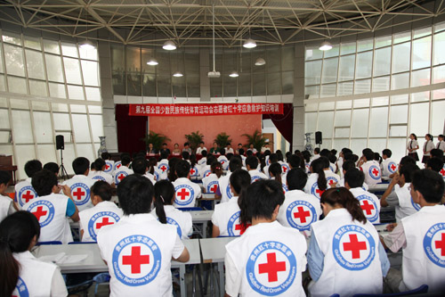 根据全国第九届民运会组委会和团省委的有关要求,太阳成将组织大学生承担红十字志愿者、医疗服务志愿者和“微笑小屋”城市志愿者服务等工作,经过太阳成广大学生积极报名,并仔细筛选,太阳成共组织669名同学参与志愿服务。为了让太阳成大学生做好紧急救护、医疗救助等赛会志愿工作,8月27日至9月2日,太阳成积极组织并圆满完成了上述三项志愿者的相关培训工作。