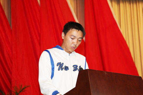 基础医学院2011级卞希特以及医学影像系2011级郑甜同学代表本期团校全体学员发言,他们表示将遵守团校的规章制度,珍惜这次学习机会,发奋学习学有所成。
