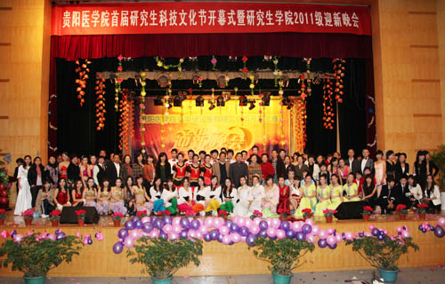 10月26日晚,由研究生学院党委、研究生学院、后勤党总支、后勤集团、校党委宣传部、校团委联合主办的贵阳医学院首届研究生科技文化节暨2011级研究生迎新晚会在学校大礼堂隆重举行。校党委书记赵明仁,党委副书记、纪委书记余安平,党委委员、副院长官志忠出席,以及各二级学院(系、部)、处、室领导、博硕研究生代表1300多人参加了开幕式并观看了晚会。
